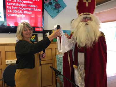 Sinterklaas las daarna een gedicht voor waarin het doel van zijn komst werd uitgelegd. Daarna werden de sleutels van de bus aan de directeur of bestuurder van de instelling overhandigd.